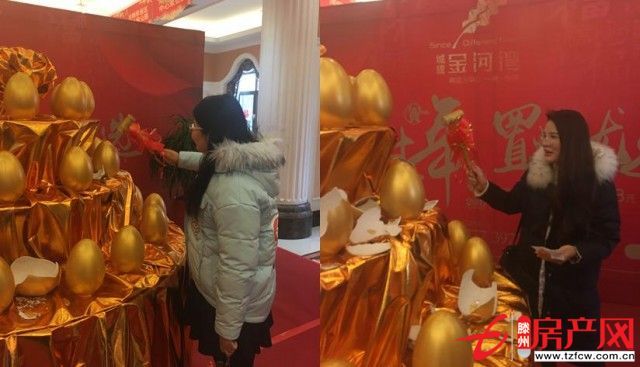 此次活動為了回饋年底置業的朋友,城建·金河灣還為購房客戶準備了置業大禮和砸金蛋優惠!1月16號上午,項目成交火爆,轉眼間金花、金蛋碎片灑滿了紅地毯,購房客戶砸的開心,陪同的朋友和親屬看的熱鬧,營銷中心不時傳來陣陣喜悅的歡呼聲!