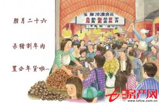 民間諺語稱“臘月二十六 ,殺豬割年肉”,說的是這一天主要籌備過年的肉食。所謂殺豬,當然是殺自己家養的豬;所謂割肉,是指沒養豬的貧困人家到集市上去買過年吃的肉。將“割年肉”放入年謠,是因為農耕社會經濟不發達,人們只有在一年一度的年節中才能吃到肉,故此稱為“年肉”。