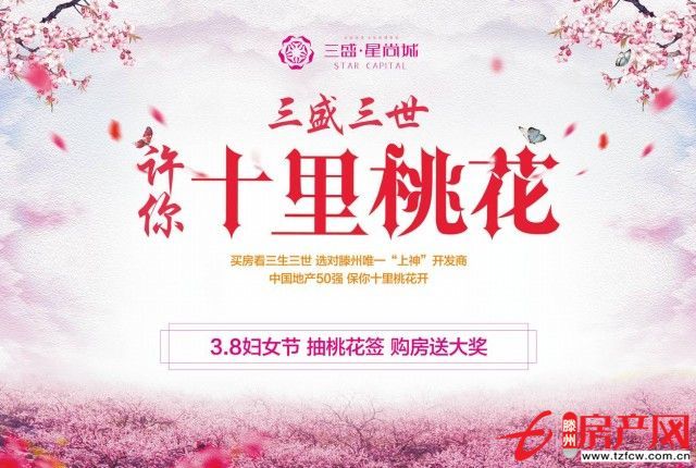 3月5日-3月8日,婦女節三盛三世·許你十里桃花,定購175㎡奢闊大宅產品即可獲得桃花簽一支,抽取“十里桃花”獎品。