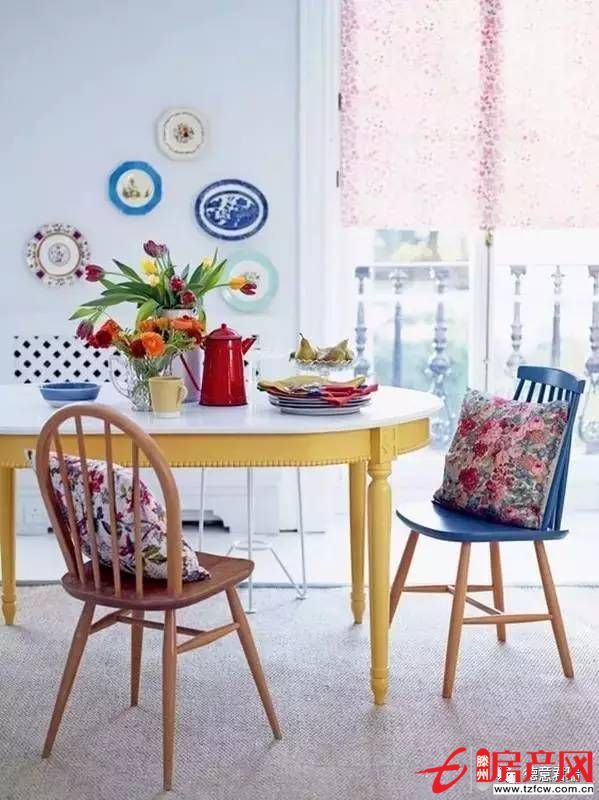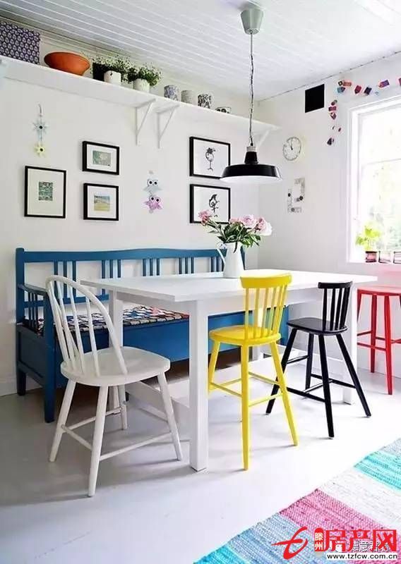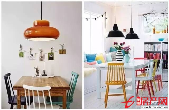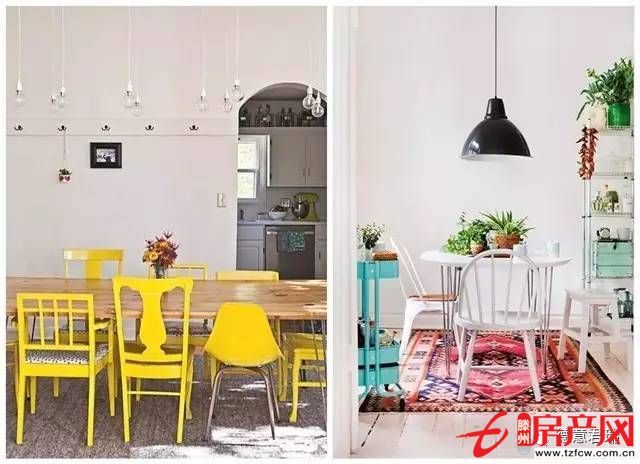 不同款式的餐椅,利用相同或相近的顏色,提高整體的和諧性,保險又出彩。