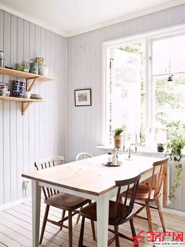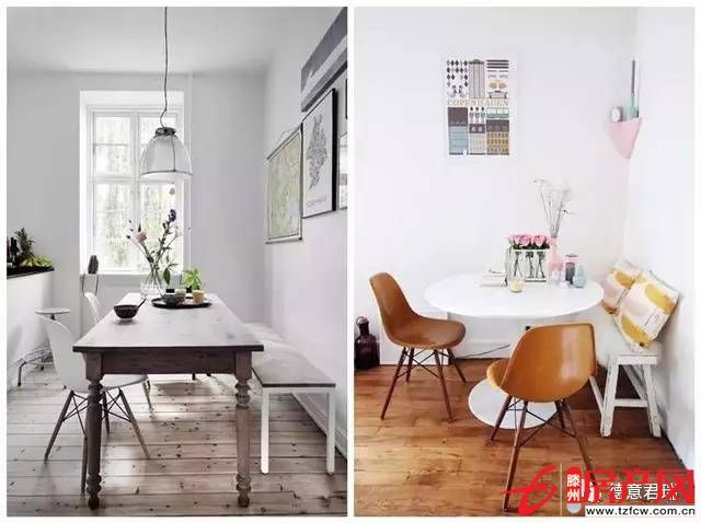 同為木質餐椅,造型稍有不同,卻讓餐區變得豐富起來。