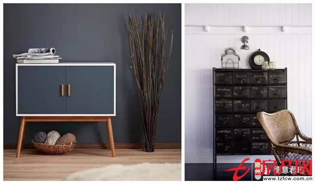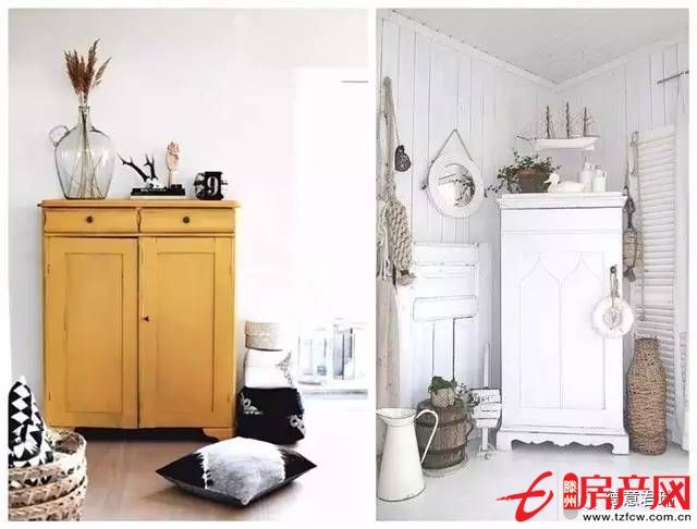 柜子上和柜子邊的搭配也可以起到很好的裝飾作用,讓這一片小區域豐富起來。但是要注意色系和風格的配合,不要堆放過多雜物。