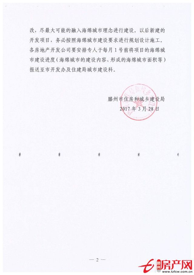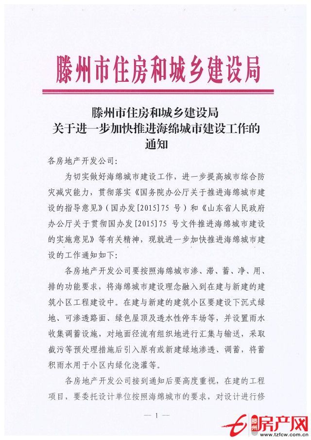 附2:滕州市住房和城鄉建設局《關于進一步推進海綿城市建設工作》的通知