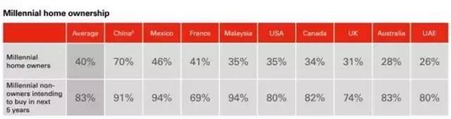 根據調查結果,在這9個國家中,千禧一代(80后、90后)的住房擁有率平均為40%。