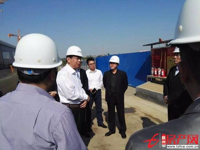 2017年4月27日上午,滕州市副市長劉新攜市建工局、綜合行政執法局、建設局、環保局等領導,蒞臨保利·海德佳園現場考察,并在B區施工現場召開防塵治理現場會,保利(山東)建設投資有限公司總經理孫貽祝、副總經理趙峰、張凱等各部門負責人熱情接待。