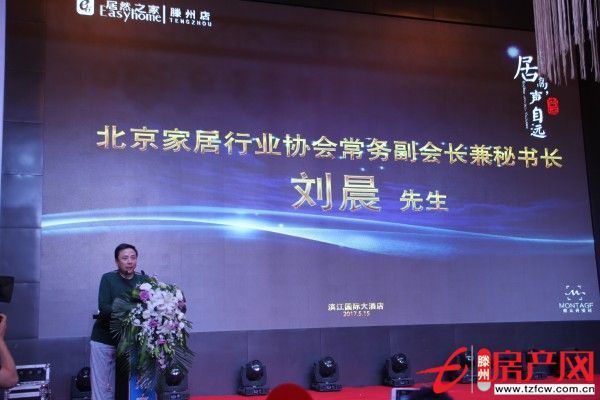 2017年5月15日下午,居然之家滕州店招商發布會在滕州市濱江國際大酒店隆重舉行。北京家居行業協會常務副會長兼秘書長劉晨先生、深圳市遠超家居有限公司總裁周建平先生、山東歐克家具有限公司總經理賴野川先生、中山市朗斯衛浴有限公司董事長助理向軍昌先生、依思蒙沙(北京)家具有限公司總經理李燁先生、佛山斯高家具有限公司總經理陳志明先生、顧家家居股份有限公司渠道發展中心總經理楊興國先生、天衢物流商貿城總經理李建軍先生、滕州市金嶺置業有限公司總經理王領先生、居然之家山東分公司總經理李占峰先生等嘉賓出席了招商發布會,國內外知名家具建材品牌的廠商代表、滕州經銷商代表和各大媒體代表也齊聚一堂,到場嘉賓濟濟一堂,現場氣氛火爆。