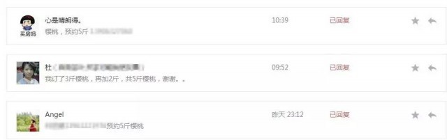 昨日消息一經公布,訂單便從四面八方涌來,更有很多粉絲朋友留言給予我們好評與鼓勵,在此一并謝謝大家的熱情支持,我們一定會不辜負大家的期望,把甜甜美美的櫻桃及時送到大家手中!明日一早,我們將開始新鮮直采大櫻桃,11:30準時開售,18:00結束,請各位預定了櫻桃的朋友也準時到場,咱們不見不散~