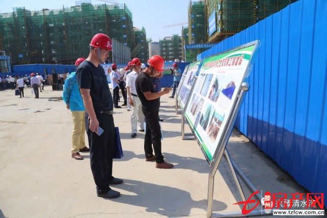 為進一步提升建設工程精細化施工水平,總結推廣建設工程質量管理經驗,5月27日上午,滕州市建筑工程質量標準化管理暨精細化施工現場觀摩會在興滕·清水灣項目召開。市住建局黨委委員、主任科員王慎勇,棗莊市質監站副站長曹浩,滕州市房管局局長劉子舜、黨總支書記孔德良,市質監站站長張軍、書記孫強等領導同志及棗莊市各區市開發建安單位、監理企業等800多名項目經理、現場管理人員參加了現場觀摩會。觀摩會由滕州市質監站站長張軍主持。