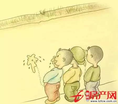 8.男孩子站成一排,看誰尿得更遠。
