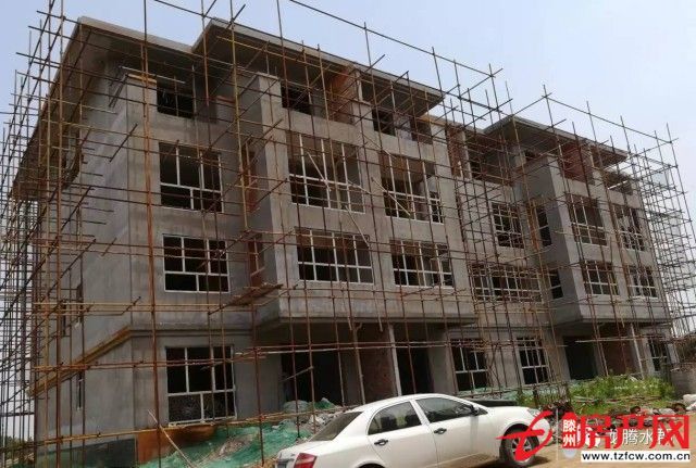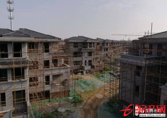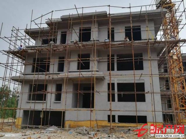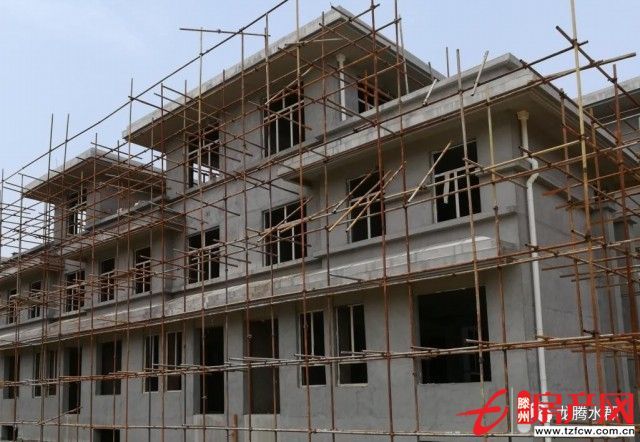 屋頂瓦片全部安裝完畢;外墻粉刷與外墻保溫施工完畢,即將進行外墻水包水多彩漆施工。