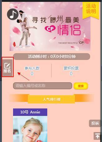 3、然后你就會看到這個報名頁面(頁面打開可能會有點慢耐心等候哦),點擊左側“報名”按鈕,按照引導上傳照片+情侶宣(la)言(piao)。