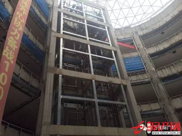 商場內部觀光梯及扶梯已全部安裝完畢,方便商家裝修使用!