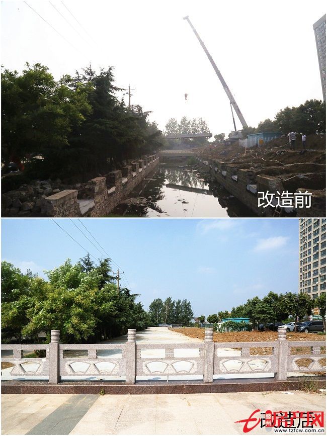 結合創建國家衛生城市活動,市房管局所屬的中遠建設工程公司承擔了此次改造工程任務。經過近兩個月的緊張施工,調用挖掘機、鏟車等大型機械設備10余臺,對河道進行截流清淤、鋪設護坡、安裝蓋板、種植土整平等工作,改造后的臭水溝變成平整干凈的水泥地,不但解決了原本惡臭熏天、污染、不安全等問題,還變廢為寶,可以當做停車場等,極大改善了該區域的生態環境面貌。