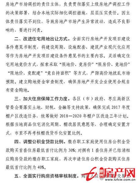 一、強化主體責任。各區(市)政府、棗莊高新區管委會是房地產市場調控的責任主體,負責貫徹落實上級房地產調控工作的決策部署,結合本地實際細化調控措施,層層壓實責任。因主體責任落實不到位,導致房地產市場產生異常波動,造成不良影響的,要進行問責。