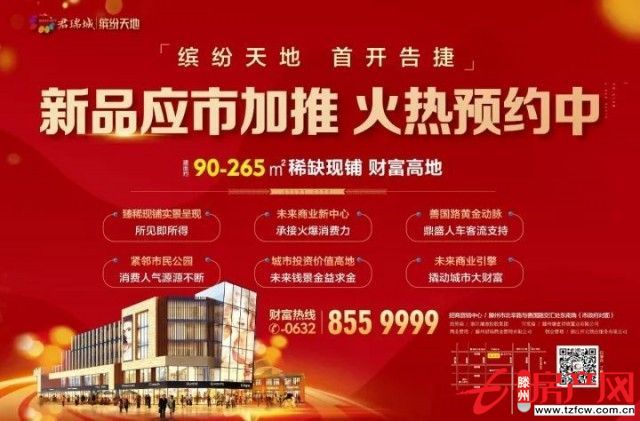 君瑞城繽紛天地新品旺鋪,建筑面積約90—265㎡,應市而來,正在火爆預約中,即將再度開搶,必將再掀滕州新一輪搶鋪熱潮!給家人一個財富保障,雙十一暢快剁手!
