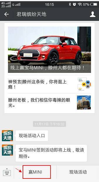 Step2:進來之后,在公眾號下方菜單點擊“贏MINI”。