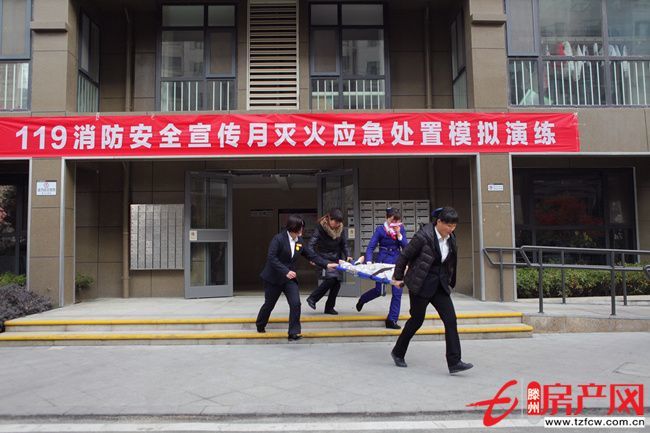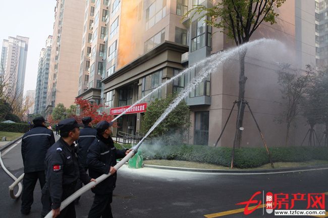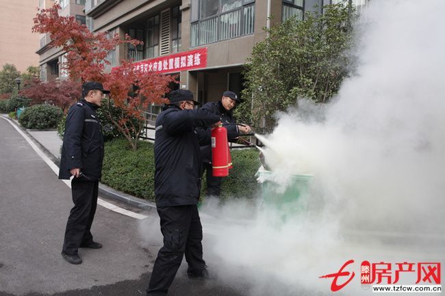 上午10時,隨著該小區消防總控室內的警鈴驟然響起,消防演習活動正式開始。據了解,該演習分為三套方案:一是小區28#樓垃圾箱發生明火險情,物業人員接到報警后,迅速搶險,用滅火器撲滅險情;二是小區7#樓發現火災險情,冒出滾滾濃煙,業主在物業人員的指導下按照既定方案逃生,在采取掩耳捂鼻等防范措施后,緊張有序地穿過濃煙,疏散到安全區域,并模擬業主受傷應急處理;三是模擬個別業主被困于火災現場,在窗口等待救援,消防員通過消防云梯快速實施救援的場景。