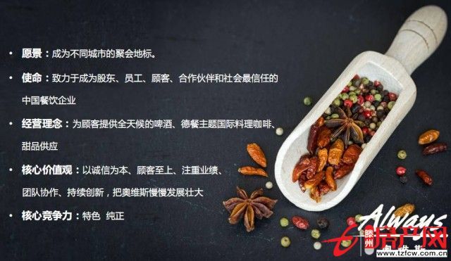 奧維斯品牌發源于滕州,創始人孔大為憑著正宗的西餐品質、精準的市場定位、專業的品牌發展策略讓奧維斯走向全國,上海店正在選址中,君瑞城繽紛天地店正在裝修中。奧維斯為打造城市聚會新地標,從上午10點至深夜1點,啤酒·咖啡·國際料理,現場演繹,無論任何時刻聚會都可以選在奧維斯啤酒花園餐廳。