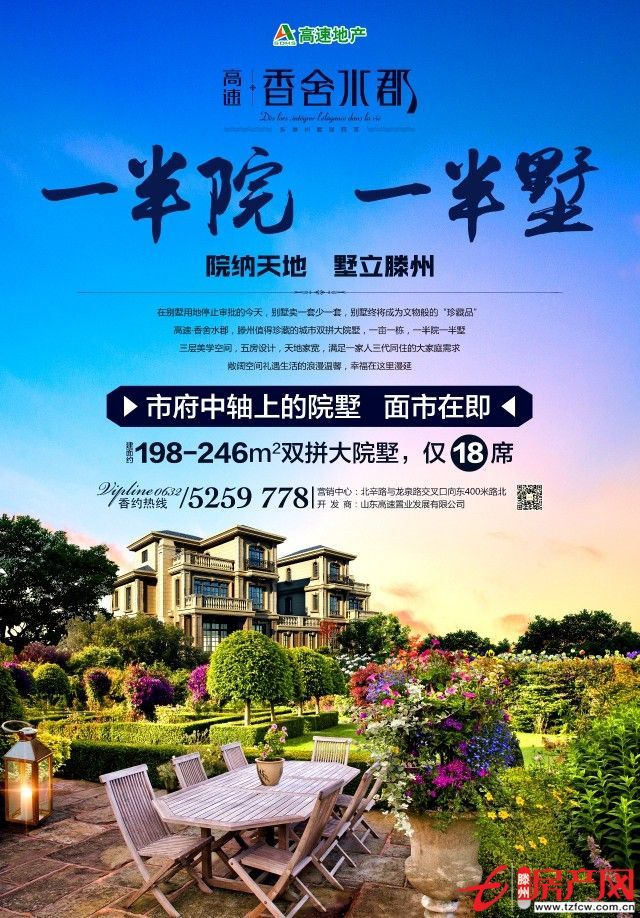 高速·香舍水郡,市府中軸上的院墅,一畝一棟,一半院一半墅,三層美學空間,三代共居大宅,滕州罕有,稀世珍藏,恭迎品鑒!