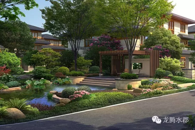 龍騰水郡,七重立體園林景觀,移步換景,園林是樹木、花草、石材、小品、雕塑、疊水、景墻的巧妙構造。