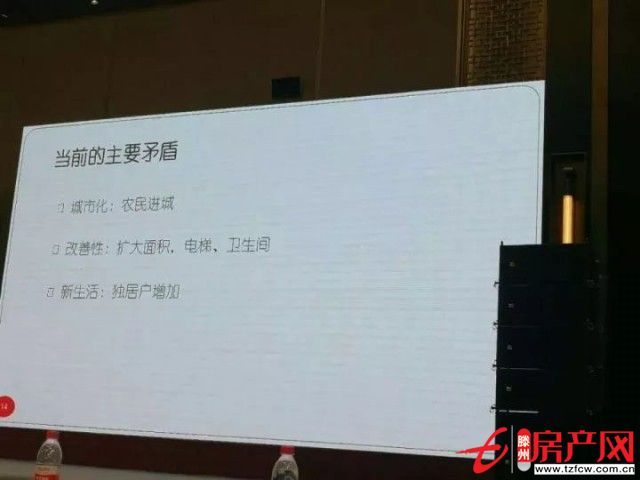 所以很多樓沒有熱水,我們大概全國90%以上的樓沒有熱水,70%以上的沒有衛生間。所以很多家庭買熱水器,淋浴器,擱到廁所里頭,底下還得躲著那個洞,上頭淋浴。刷牙呢?早上起來得到廚房刷牙,這種情況在大多數樓里頭仍然保持了這個現象。這是一個很嚴重的問題,所以改善性需求所占的比例是越來越大的。