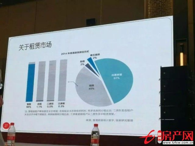 我們再看看香港,香港的租賃性住房,私有持有的只有50%,另外40%和其他部分都是靠政府提供的,政府提供多少?免租的只有2%,廉租的這部分也很少,戶主提供的也有2%,單位提供的也占到一定比例。但是這個房源從哪來的呢?房源從私有擁有的房源里來的。