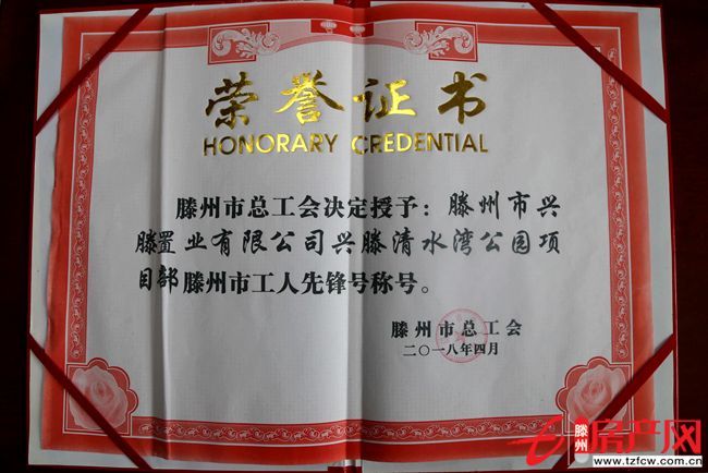 近日,從滕州市總工會傳來好消息,山東興滕置業有限公司清水灣公園項目部榮獲滕州市“工人先鋒號”榮譽稱號。