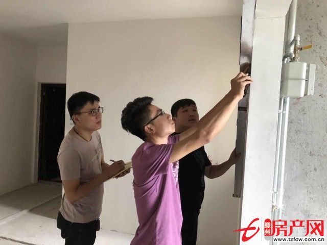 對施工棟號的墻面垂直度、平整度、空鼓、陰陽角、層高等項目進行了測量和檢測。