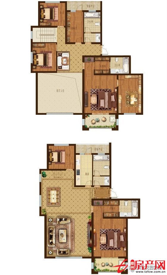 二層除公共休憩區域外還設兩個套房,可以作為主人套房和小孩房或客房。保證家庭成員居住的私密性及舒適性。