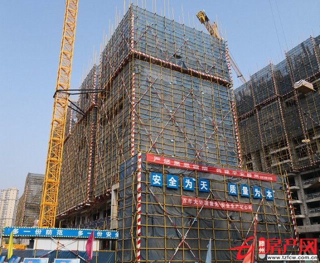 1#、2#、3#、4#號樓已完成主體十四層以下施工,目前進行十五層柱、梁、板鋼筋綁扎;
