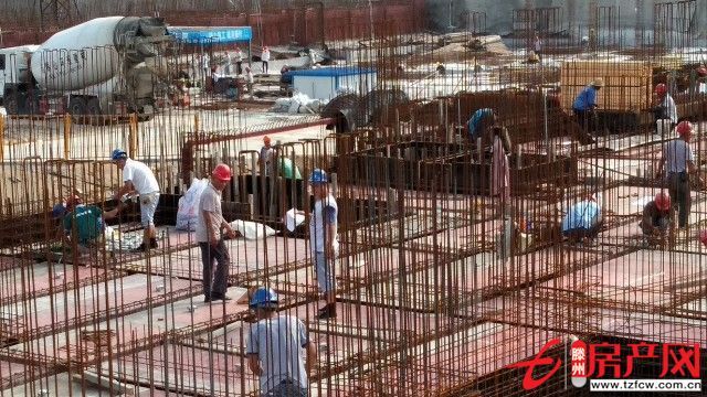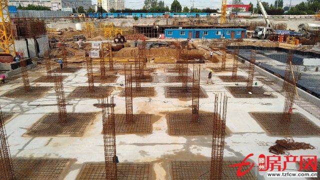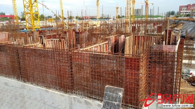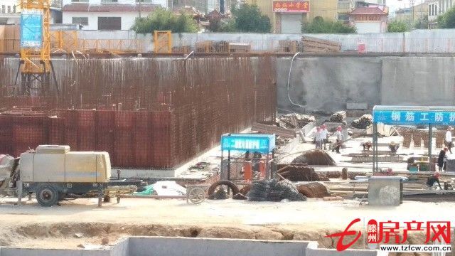 1#樓儲藏室基礎成型,鋼筋加固和水泥澆灌正在進行。