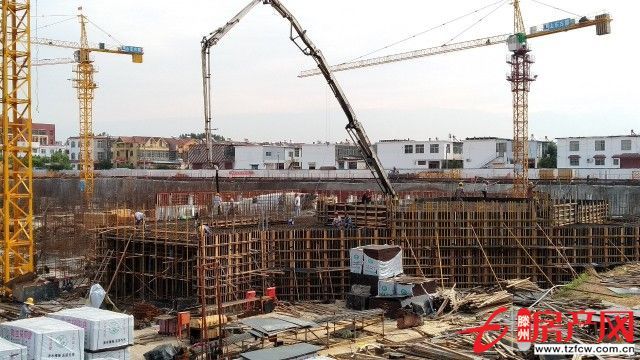 物業用房緊隨其后,水泥澆灌同步進行。