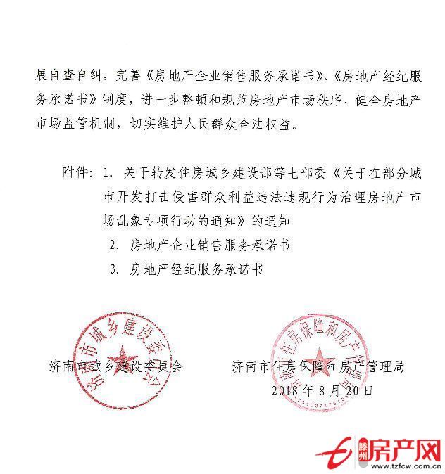 現將山東省住房和城鄉建設廳等十部門《關于轉發住房城鄉建設部等七部委<關于在部分城市開發打擊侵害群眾利益違法違規行為治理房地產市場亂象專項行動的通知>的通知》(魯建房字[2018]18號)轉發給你們,請按照專項行動通知的要求,認真開展自查自糾,完善《房地產企業銷售服務承諾書》、《房地產經紀服務承諾書》制度,進一步整頓和規范房地產市場秩序,健全房地產市場監管機制,切實維護人民群眾合法權益。