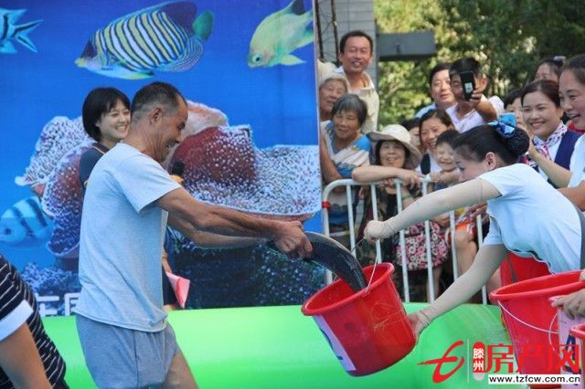 水池周邊,早就被前來參加活動的業主圍得水泄不通。大家都挽起褲腳,活動好筋骨,等著池內放魚就開始“行動”。抓魚的過程中,一位帥哥抓的過急,不小心整個人都掉進了水里;一位美女把魚兒攆到角落一定要抓到才肯“罷休”;而旁邊的王先生一出手就抓到了一條大草魚,大家都紛紛鼓掌;其他的參與者也都卯足了勁,怕魚兒從自己手上“溜走”。清涼的水池讓人們忘記了夏天的炎熱,整個活動現場充滿了歡樂和笑聲。