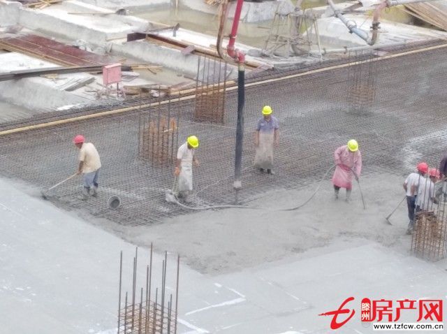 29日早上,一輛輛滿載商混的攪拌車在人和天地二期項目施工現場的大門外排起了長隊,人和天地二期裙房地下車庫工程正進行筏板澆筑和32#樓標一頂板澆筑。已立秋很長時間了,但天氣依然炎熱,車庫基礎鋼筋和柱筋經過嚴格檢查、驗收,具備澆筑條件。
