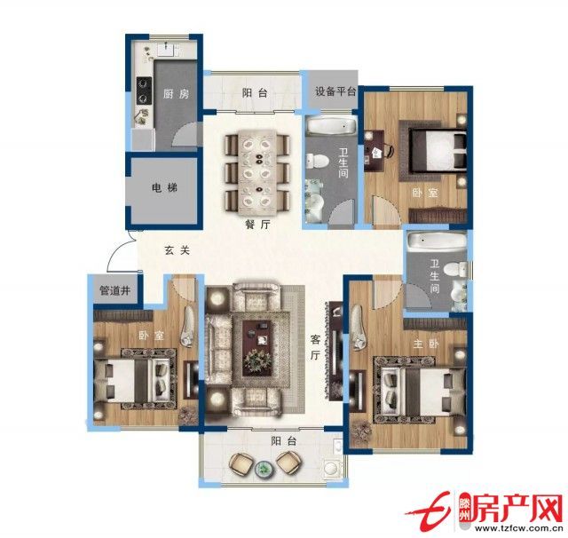 經典四居室,入口玄關,餐客雙廳一脈相承,全能私家空間,彰顯尊貴氣度;全明戶型,南北通透,采光通風更勝一籌;豪華主臥配套,獨立步入式衣帽間,更顯典雅生活;南北闊景陽臺,擁攬春華秋實四季人生景致。