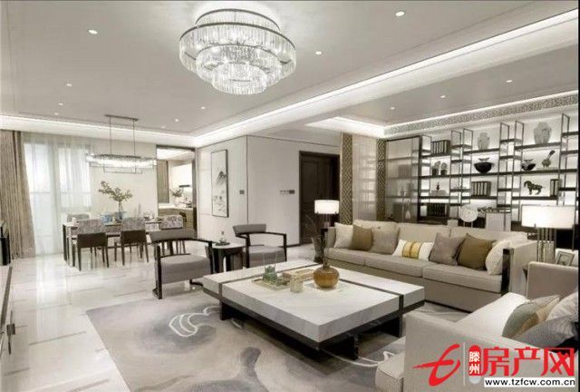 整體布局穩重大氣,客廳連接觀景陽臺,空間更加通透,采光效果俱佳,居者足不出戶便可盡攬園區美景。
