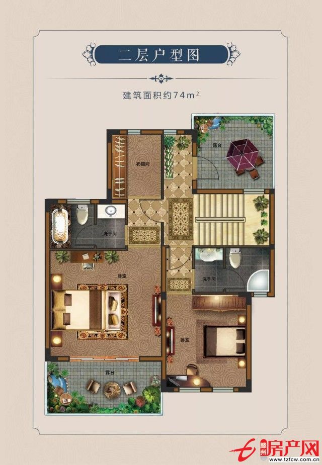 拾階而上,主臥豪華套房、獨立兒童房居于二層,步入式衣帽間、豪華私衛置于其中,先生與太太的私密領地,孩子們的成長之境。