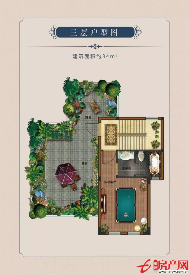為滿足家人及會客時休閑娛樂之用,第三層空間打造為多功能休閑娛樂間,不出門在家就能享受生活的無限樂趣。