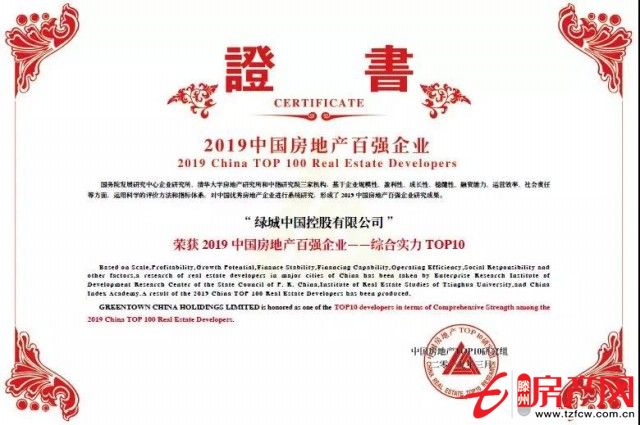 在本次盛會上,憑借穩健的規模成長、高質的產品服務以及持續不斷的創新發展,綠城中國再次榮獲中國房地產百強企業“綜合實力TOP10” “規模性TOP10” “年度社會責任感企業”三項殊榮。