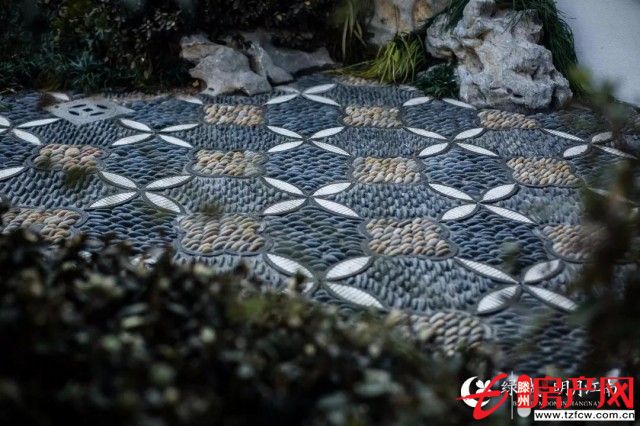 花街鋪地是一個非常講究、非常費工夫的工序,需要對鋪地鵝卵石的圖案、顏色、布局進行細膩的設計,再搭配上瓦片碎料等,由擁有數十年經驗的手工匠人細細排布。