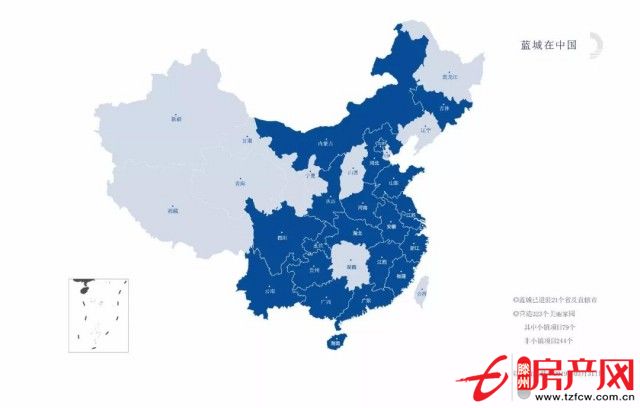 藍城以“美好生活綜合服務商”為企業愿景,致力于成為美好生活的組織者、推動者、引領者,截至2019年3月已進駐21個省及直轄市,營造了323個美麗家園。