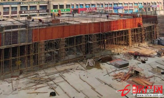 A4樓商業一層頂板模板安裝完成,梁柱鋼筋綁扎完成30%