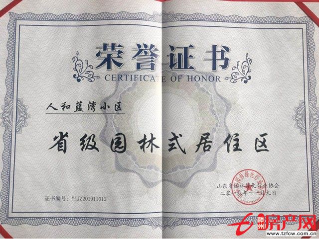 近日,山東省園林綠化行業協會公布了“2019年度省級園林式單位(居住區)”榜單,由山東滕建投資集團開發建設、滕州旺禾園林工程有限公司施工的人和藍灣小區景觀綠化工程憑借規范化的管理、優美的居住環境,在全省眾多申報小區中脫穎而出,榮獲“2019年度省級園林式居住區”稱號。