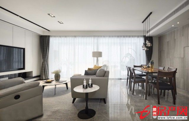 理想中的大平層,當有理想中的闊景寬廳。6米長落地大陽臺,50.98㎡客廳與餐廳相連一體的布局,形成起居與會客兩不誤的寬綽空間。
