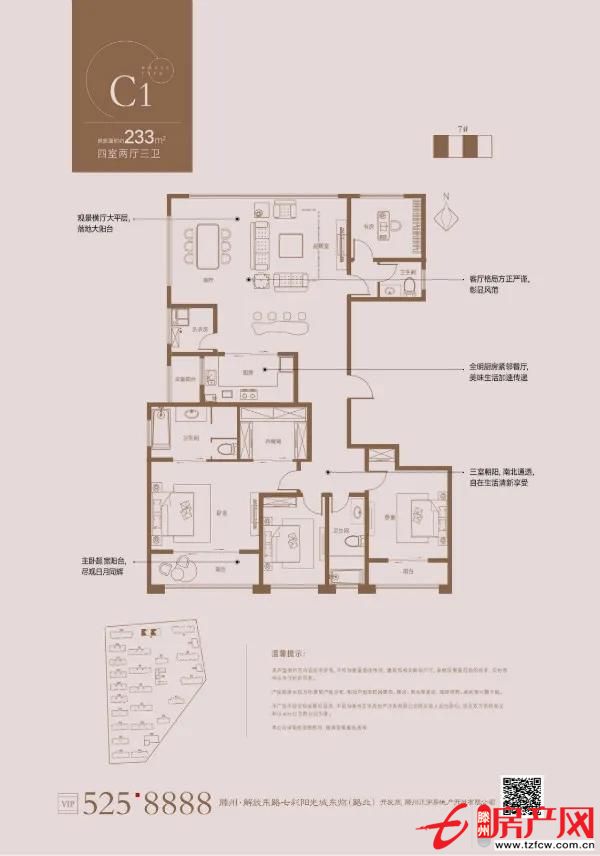 大平層代表的是一種優雅態度,低調,舒適,卻無損高貴與雅致。大而奢華并非琳瑯滿目的奢侈,而是一種用心生活的態度?;蛟S對生活最理想的模樣,你已有了萬千想象,滕州凱潤7#瞰景大平層(建筑面積約233㎡)華彩綻放,當人生至境的圖景徐徐展開,定是你心之所向。