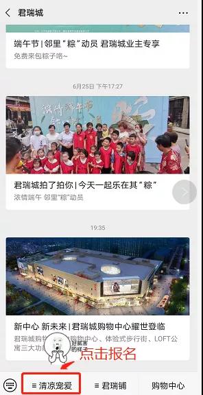 step1:關注“君瑞城”公眾號,在自定義欄中找到“清涼寵愛”。