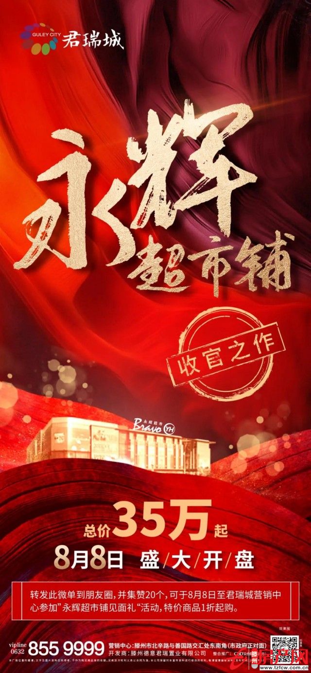 8月8日永輝超市鋪即將盛大開盤,開盤當天,君瑞城營銷中心內設永輝鋪“超市”,百種商品任你選購,1折起購!8月1日&2日“超市大贏家”活動中,網上報名君瑞城老業主,可領取50元購物券,在“超市”內選購不超過50元額度的商品。