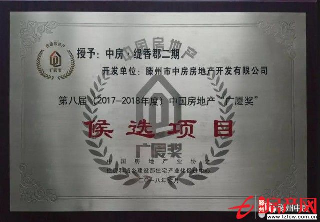 1、項目入圍國家廣廈獎。2018年6月22日,第八屆(2017—2018年度)中國房地產“廣廈獎”第四批候選項目頒牌儀式在青島隆重舉行,由中房開發公司開發建設的“中房緹香郡·璟園項目”獲此殊榮。這是暨中房·緹香郡一期項目獲得第七屆國家“廣廈獎”后再獲此獲得此獎項。