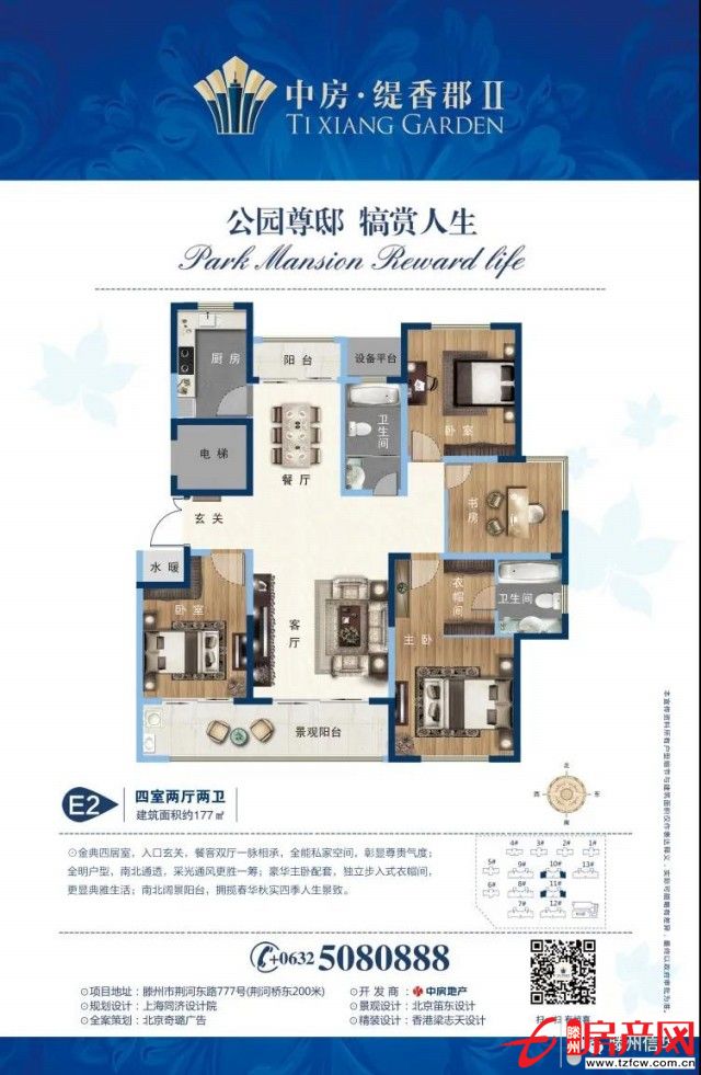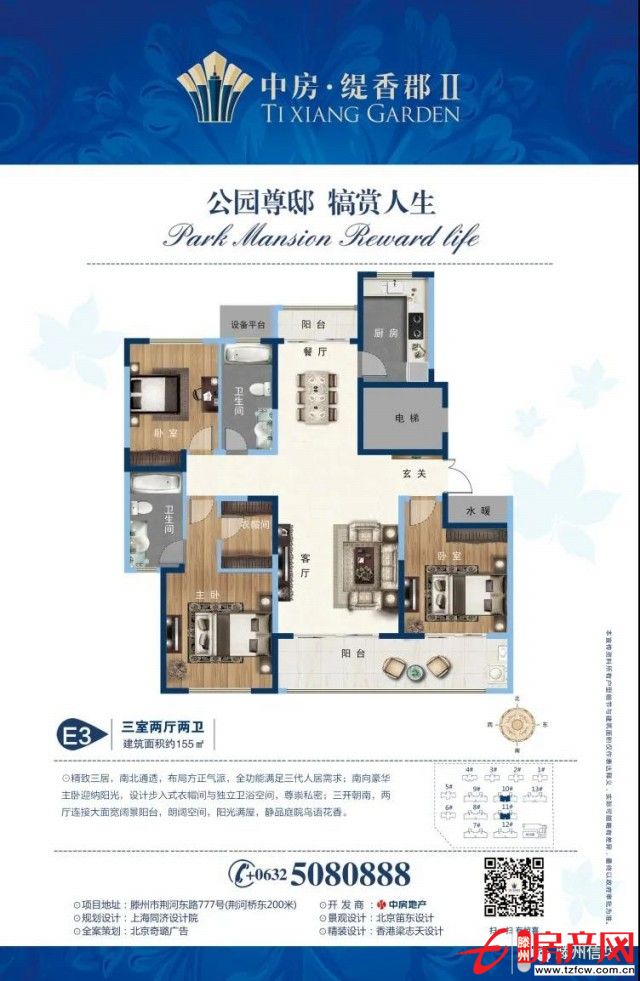 中房緹香郡·璟園項目位于滕州市東部區域,項目總建筑面積19.8萬平方米,容積率2.46,綠地率30%,項目總投資10億元,共有 13 棟高層單體住宅 ,住宅單體采用兩梯兩戶、兩梯三戶為主的布置方式,層高 3 米,戶型采用南北通透,“四明”設計。小區配套建設6班制幼兒園一處和沿街商業。建筑采用“ArtDeco”新古典風格,園林采用新亞洲風格,區域配套齊全,努力打造一個功能完整的高檔居住社區。